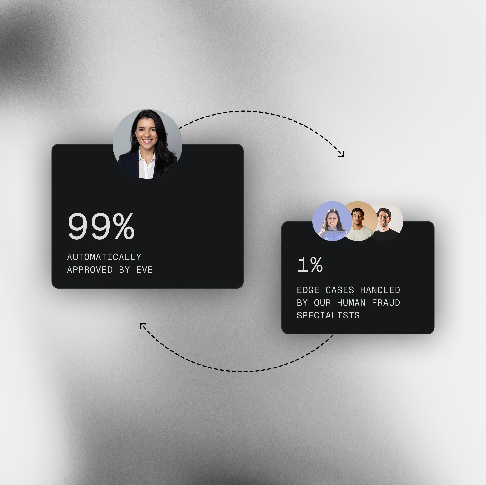 Advanced fraud prevention eliminates the back-and-forth, replacing the function of fraud and risk review teams.