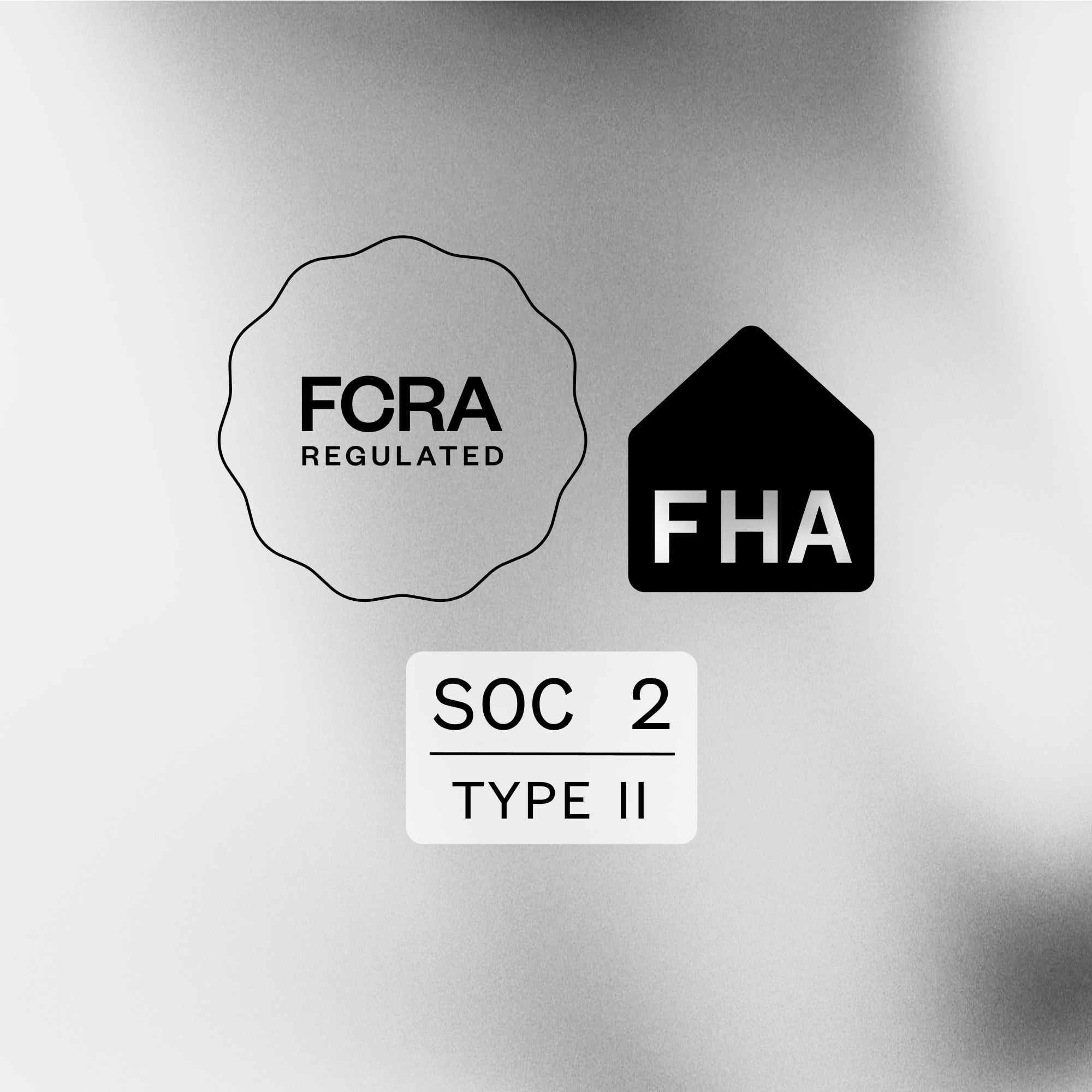 Regulated by the FCRA and the FHA, and SOC 2 Type II certified.